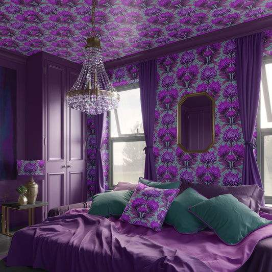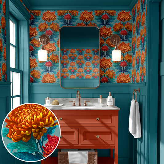 Caustic Chrysanthemum Wallpaper in Orpiment Orange
