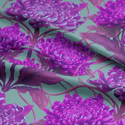Caustic Chrysanthemum Fabric in London Purple