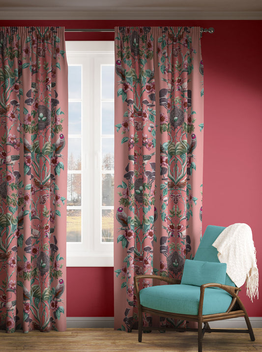 Wild Hedgerow Pink Waxcap Linen Fabric