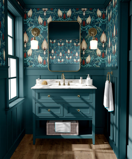 Lords & Ladies Wallpaper in Tincture of Teal SAMPLE