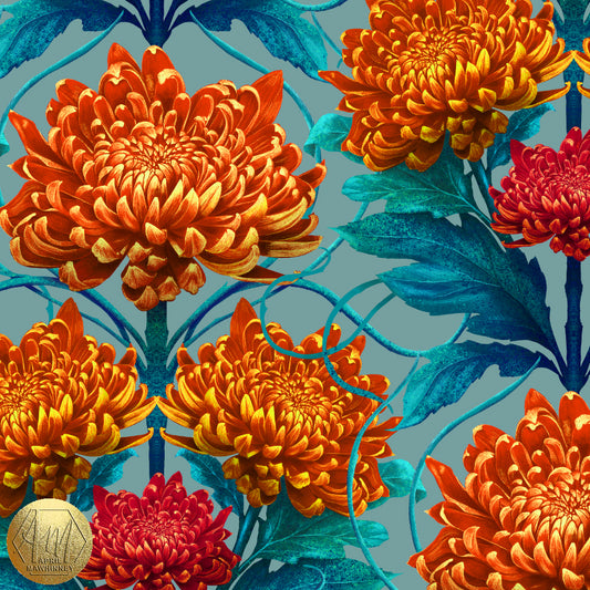 Caustic Chrysanthemum Fabric in Blue Vitriol