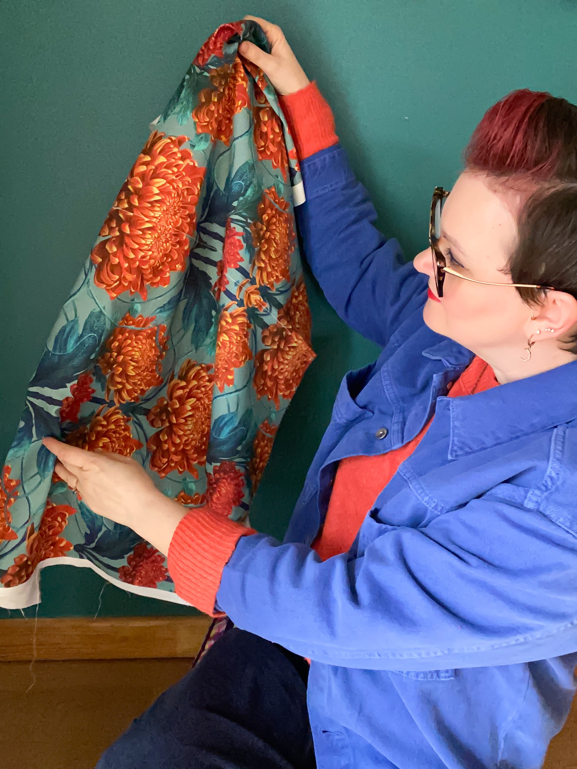 "An extensive search for fabric (for drapes to complement my new decor) finally led me to this totally eye-catching print. The colors and design are beautiful, the fabric (I chose the cotton linen) has a great quality feel, and the backing is opaque enough that it won't need lining but also lets in light without obscuring the pattern! Beyond that, April has been a delight to communicate with and has repeatedly taken steps to make sure the whole experience is completely satisfying and even pleasantly surprising! Love it!"