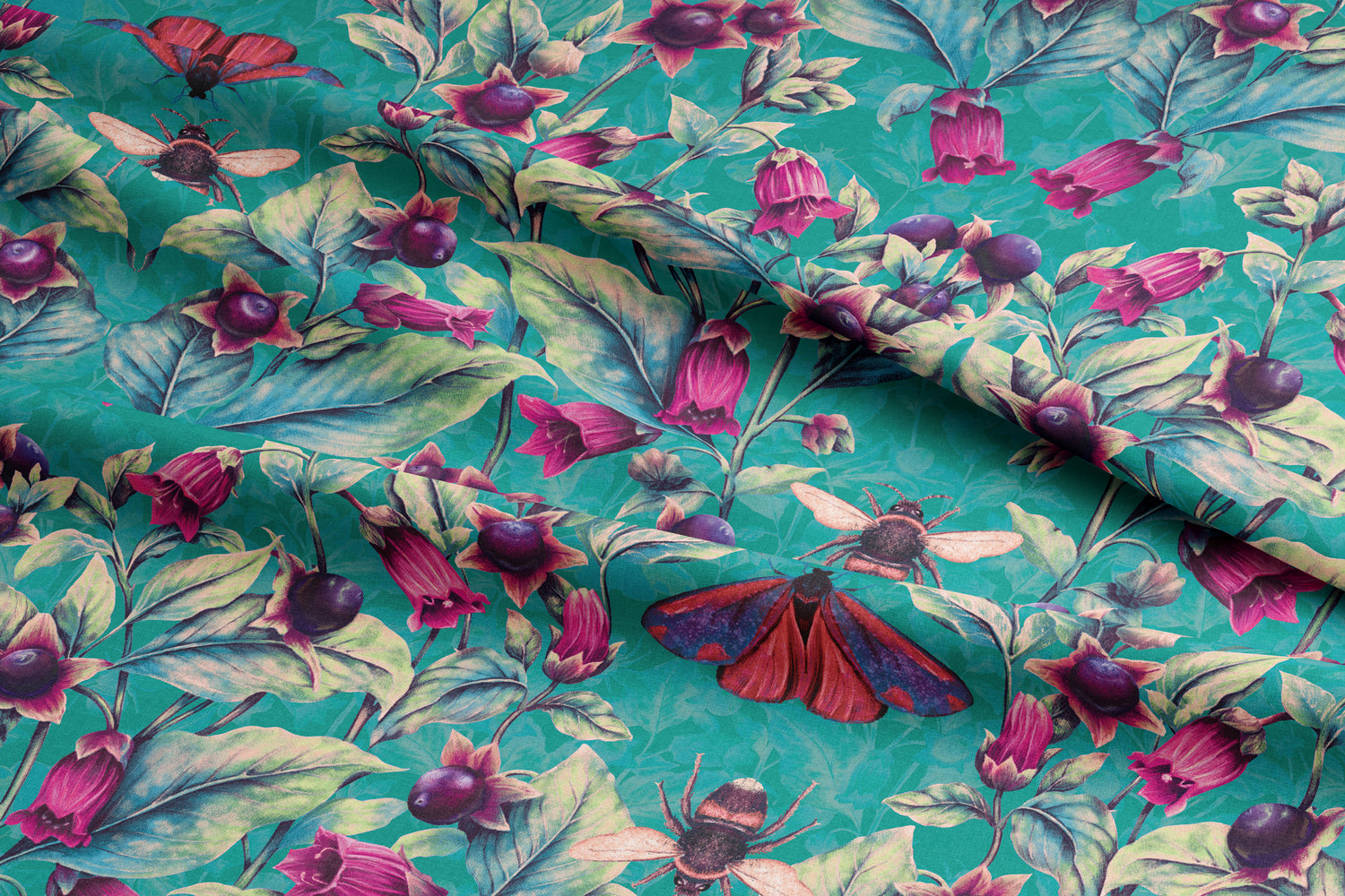 Inspired by Arts and Crafts interiors and the trend for dopamine decor, this fabric is hand illustrated by April (no AI here!) and features statement Chrysanthemum flowers, but with a caustic twist! This vibrant blue floral print is inspired by Blue Vitriol, a poisonous blue, crystalline compound of copper sulfate. It is used in insecticides and germicides, in electrolytes for batteries, and in electroplating baths.