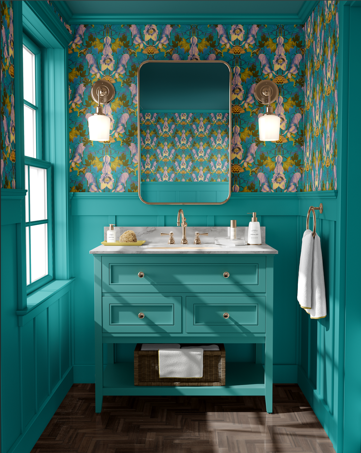 The Spring colourway features vibrant teals, lavender purples, olive greens and soft yellows. It feels uplifting, energetic and perfect for expressive interiors.