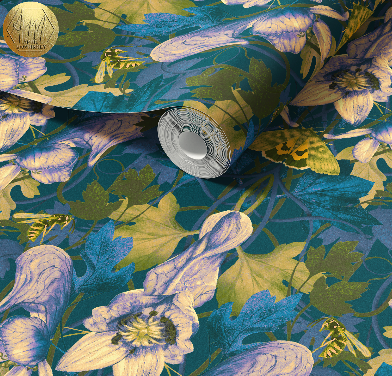 Every petal and curve is hand drawn by April, with the detail of each pencil stroke visible in the final print. The pattern feels familiar in its Morris inspired structure, yet modern in its expressive palette. It is a piece of art for your walls, designed to elevate any room.